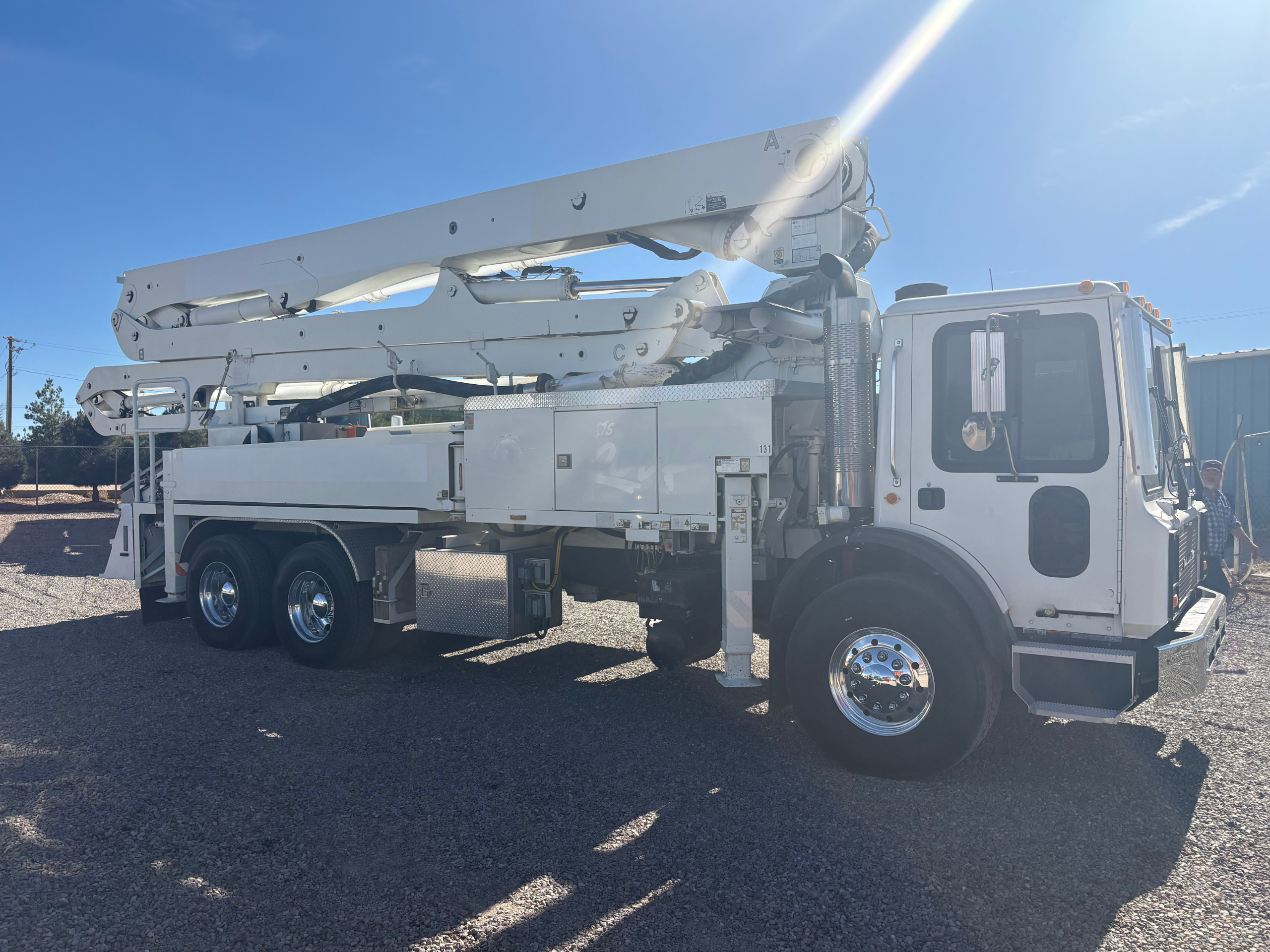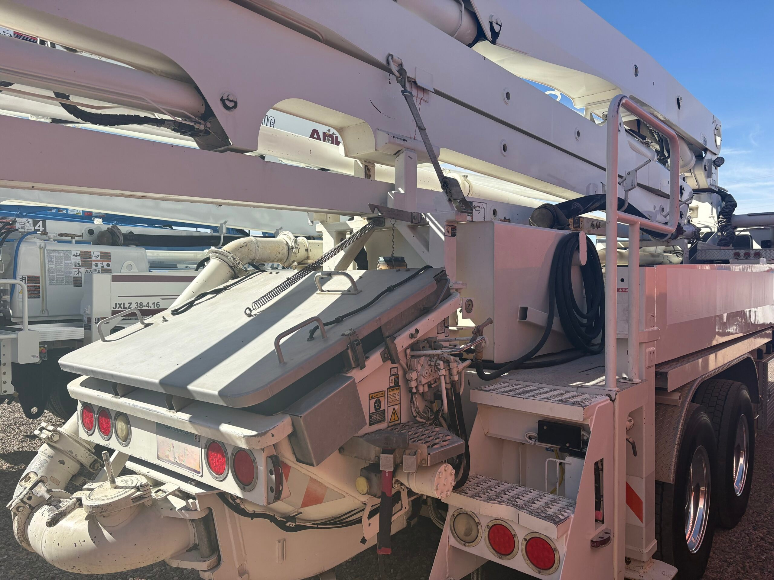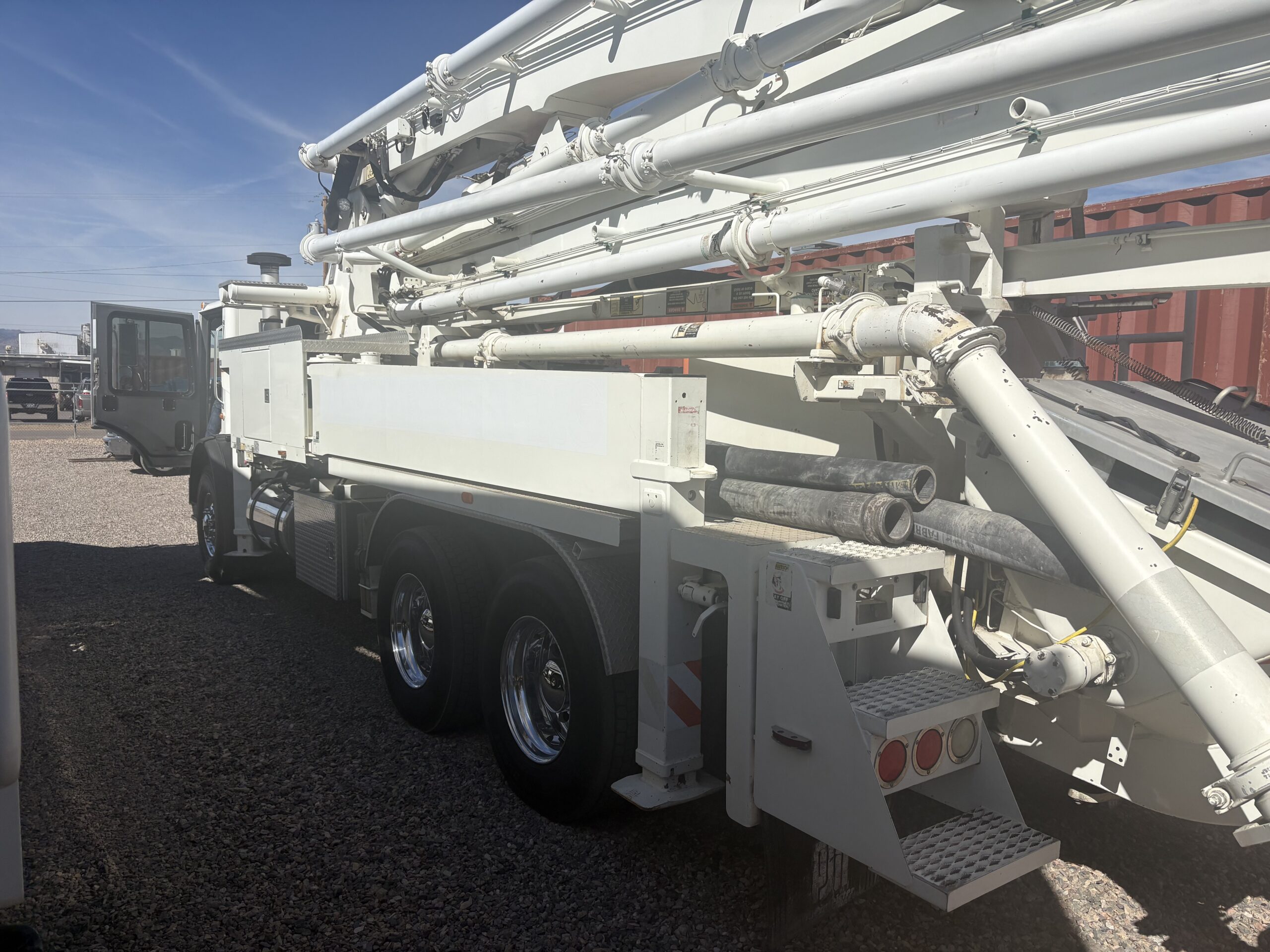 | Condition: Great condition, very low hours, 50% boom pipe, 95% wear parts, 90% tires, 95% concrete cylinders. Both remotes, current boom inspection, original mud cup. Like buying a near new pre emissions Putzmeister 38Z. Western USA |
