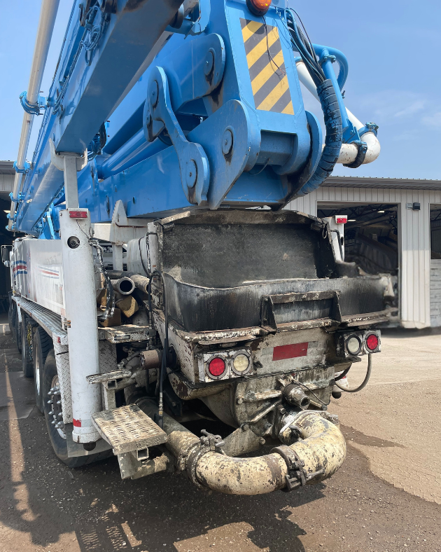 Condition: Good condition, 95% boom pipe, 80% wear parts, 75% tires, 95% concrete cylinders. Has both remotes, new material cylinder 2024, new boom pipe 2024, rebuilt forward rear end. N Central USA