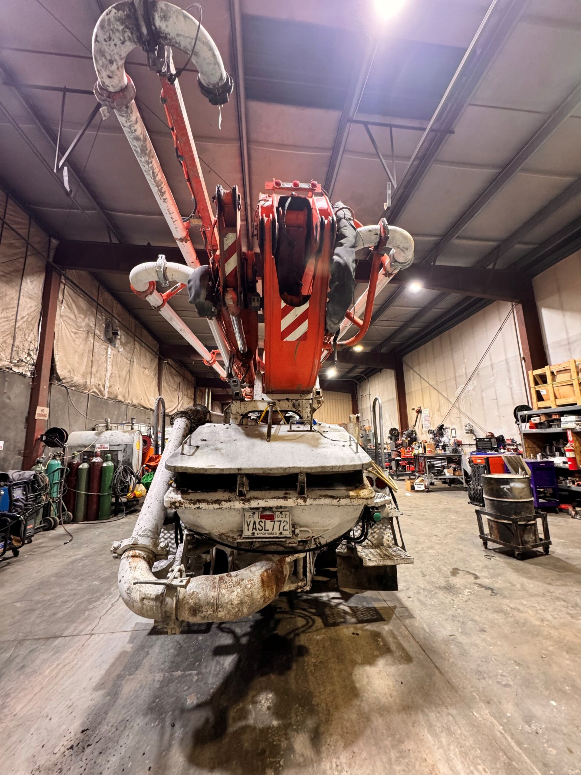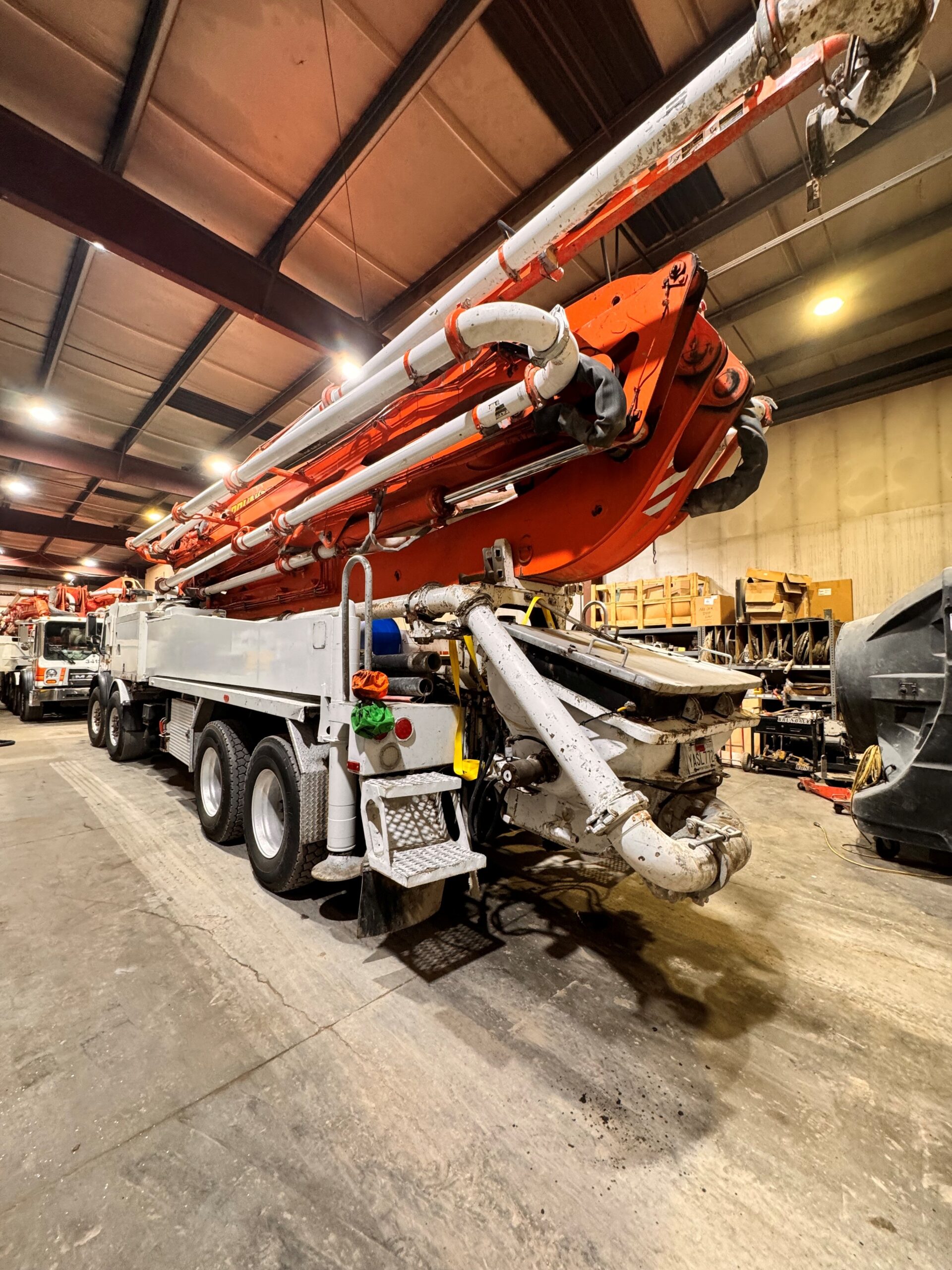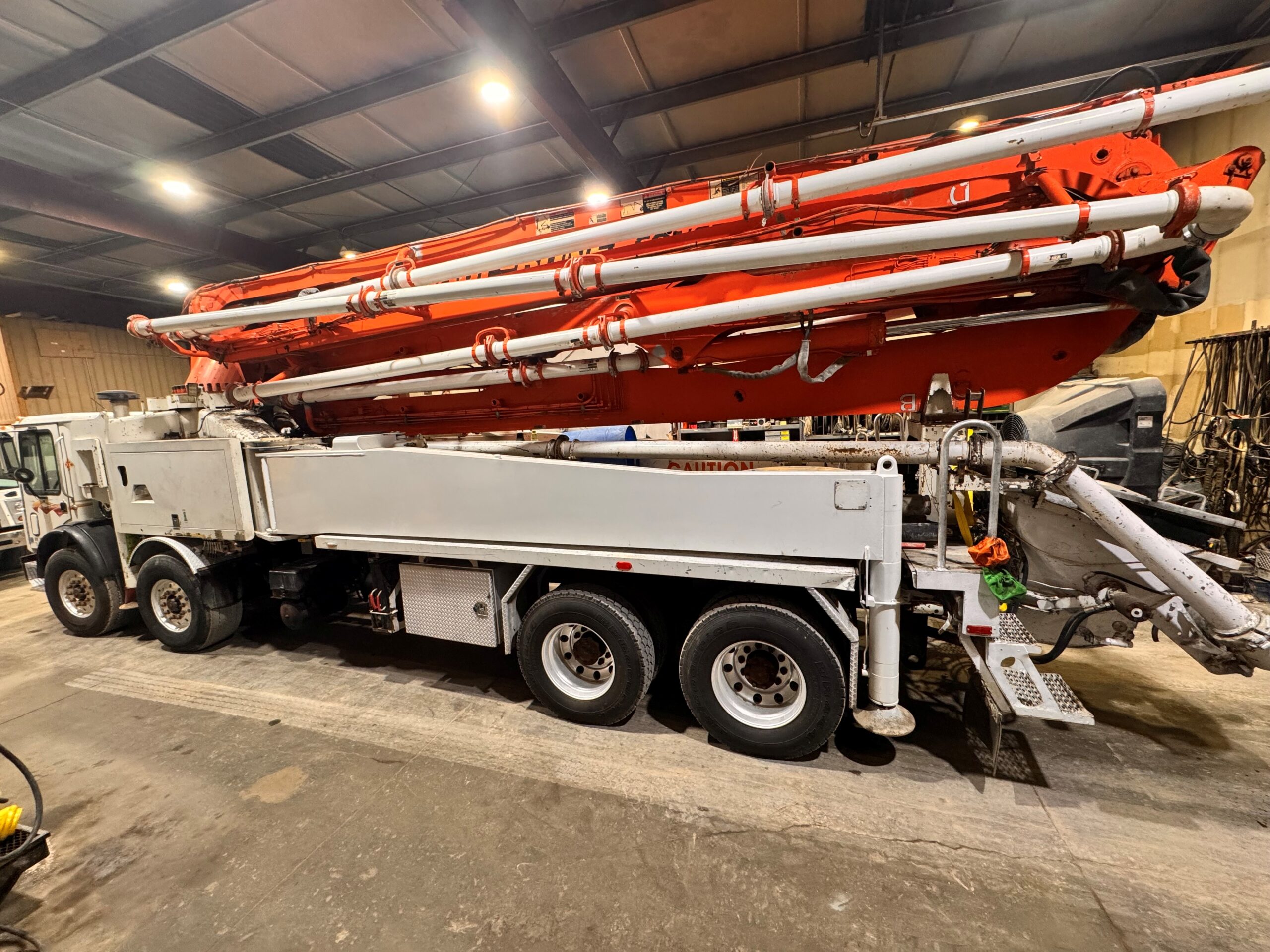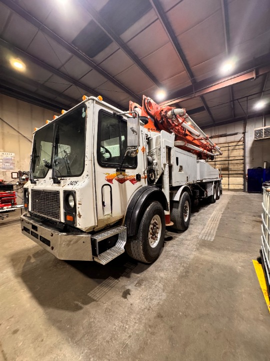 | Condition: Good condition, 75% boom pipe, wear parts are good, tires are very good, concrete cylinders are good. Has current Dot and Boom inspections. Pump has brand new D/S rear outrigger leg, new 2nd and 3rd section cylinders. Rods and mains rolled and new oil pump 10/31. NW USA |