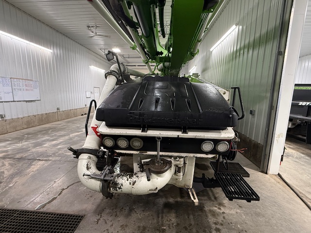| Condition: Excellent condition, 90% boom pipe, 75% wear parts, 75% tires, 90-95% material cylinders. Twin wall boom pipe with only 22,260 yards pumped. Hopper and cab interior are in 'excellent' condition. Has current DOT inspection, both remotes. Northeast USA |